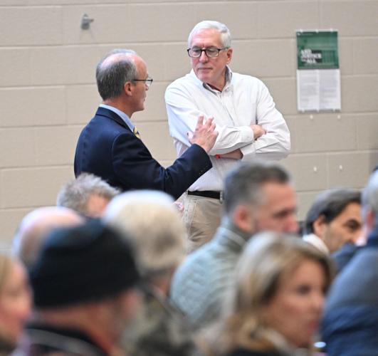 Steven Heffner, left, and Brad Witmer talk before the Republican Committee of Lancaster County’s nomination for the 36th Senatorial District special election at Landisville Intermediate Center in Landisville on Saturday, Jan. 25, 2025.